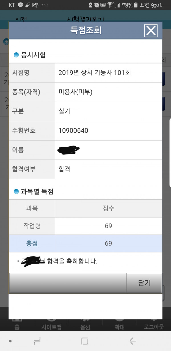 69점으로 합격했어요~