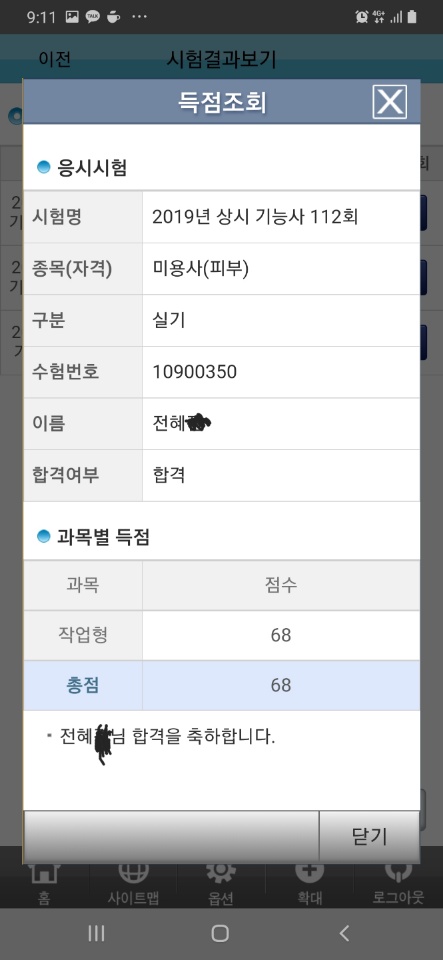합격축하합니다. 혜진님~~ 공부하신다고 고생많으셨습니다. 수고하셨어요. 자신감을 바탕으로 다른 일도 잘 해내시길 바랍니다. {이모티콘:onion-002.gif:50}